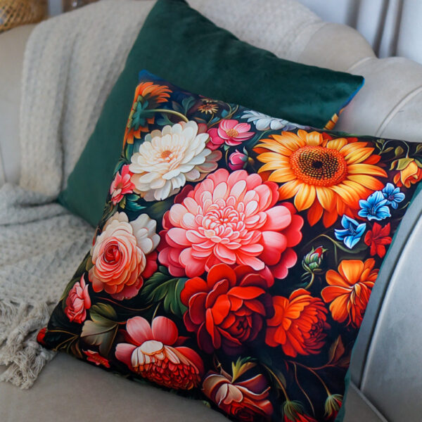 Poduszka welurowa z motywem kwiatowym