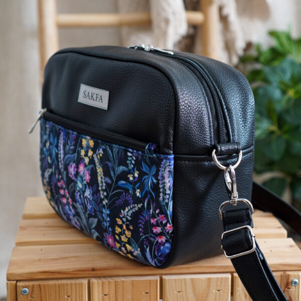 Listonoszka Sophie została uszyta z wysokiej jakości skóry tapicerskiej o ciekawej, wyrazistej strukturze. To mocna, trwała skóra ekologiczna w klasycznym czarnym kolorze. Kolorowa kieszonka dodaje jej charakteru i sprawia, że torebka z pewnością zachwyci niejedną osobę. Pasek również został wykonany z tej samej skóry, dzięki czemu całość prezentuje się spójnie i elegancko.