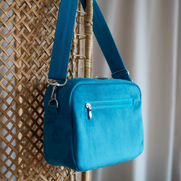Mała listonoszka Sophie – niech nie zmyli Cię jej rozmiar! Mała, ale jaka pojemna i w dodatku z dużą ilością kieszonek. Środek skrywa bawełnianą podszewkę i trzy kieszonki w tym jedną zapinaną na zamek! Dodatkowe dwie znajdują się na przodzie i z tyłu naszej listonoszki. Z taką ilością kieszonek zapomnisz o bałaganie. Klucze, telefon, dokumenty, długopisy – wszystko piękne schowane. W dodatku jej rozmiar pozwala na spakowanie kalendarza czy planera.