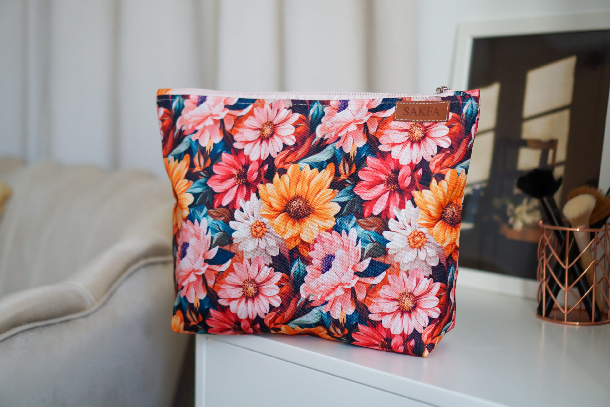 Oprócz funkcji praktycznej, może pełnić również funkcję ozdobną Twojej toaletki. Nasza kosmetyczka została wykonana z wodoodpornego materiału, łatwo ją wyczyścić i utrzymać w niej porządek.