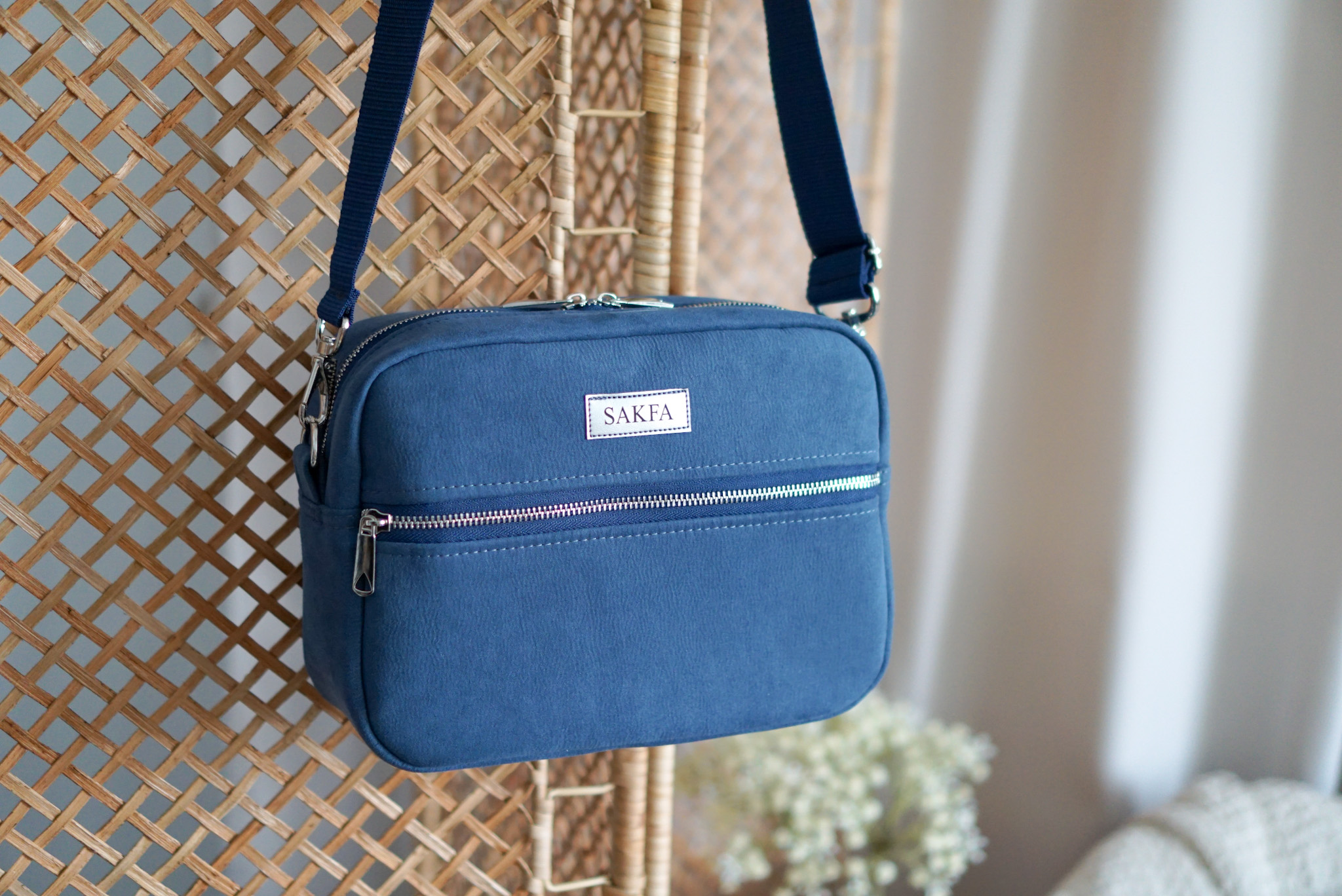 Listonoszka została uszyta z mocnej tapicerskiej tkaniny przypominającej swoimi właściwościami skórkę nubuku, w pięknym odcieniu indygo. Starannie dobrane dodatki w postaci metalowego zamka oraz długiego, regulowanego paska mocowanego na karabińczyki dodają jej elegancji i szyku. Prostokątna forma oraz dodatek naszej klasycznej metki sprawiają, że torebka jest minimalistyczna, a przy tym niezwykle stylowa. Listonoszka Sophie to torebka stworzona dla kobiet przez kobiety!