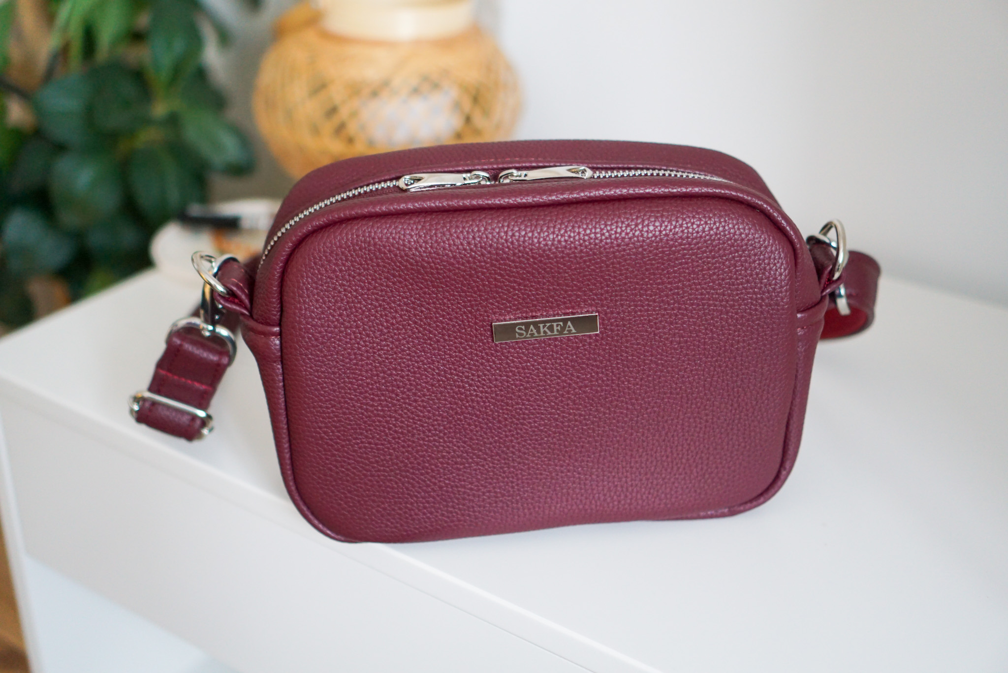 Sophie MINI została uszyta z wysokiej jakości skóry tapicerskiej o wyrazistej, ciekawej strukturze. To mocna i trwała skóra ekologiczna w pięknym bordowym kolorze. Gładki front nadaje jej elegancji, a pasek wykonany z tej samej skóry tworzy spójną i stylową całość.