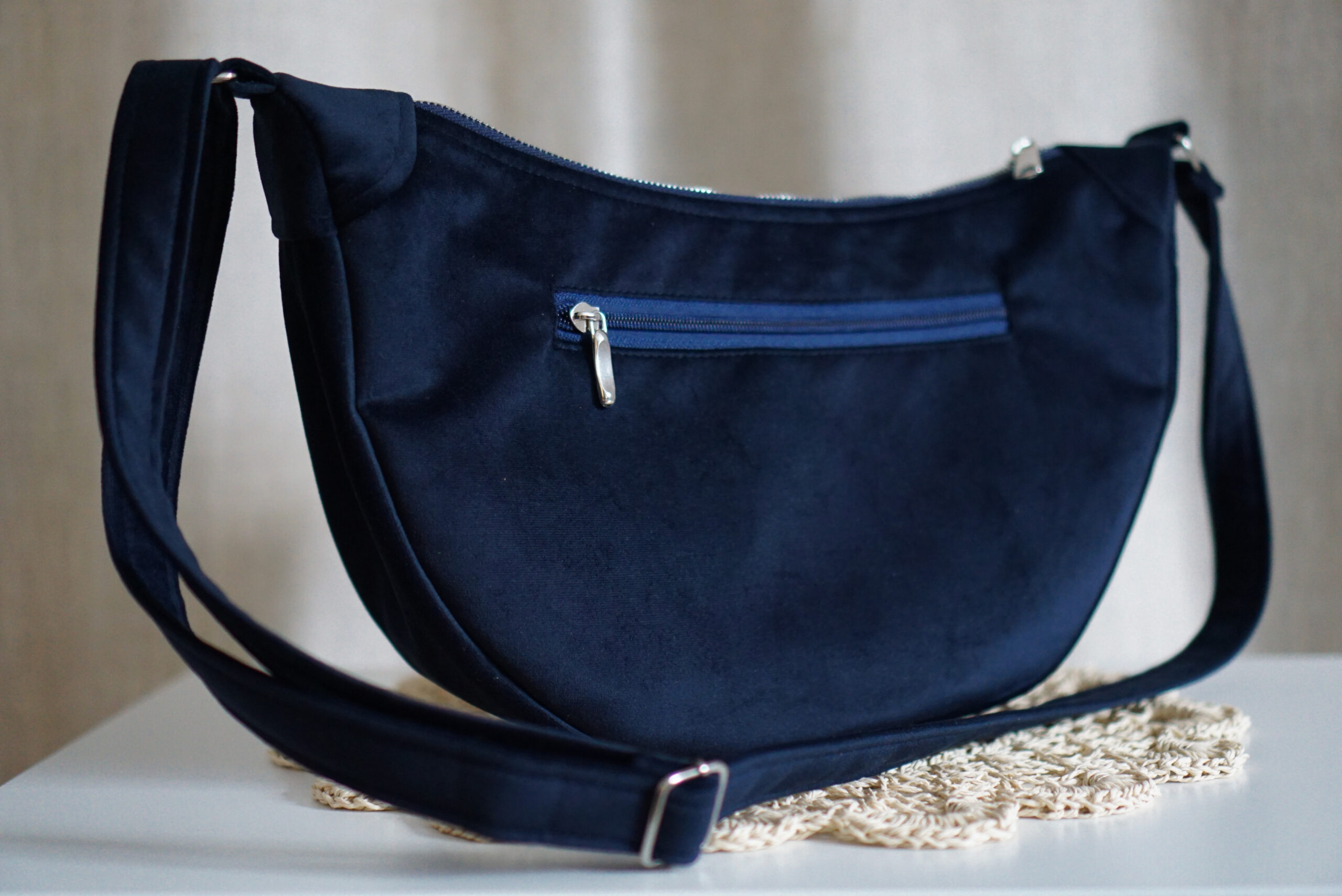 Nie sposób przejść obok niej obojętnie! Torebka półksiężyc welurowa to połączenie wygody, kobiecego stylu i ponadczasowego designu. Jej charakterystyczny, półokrągły kształt nawiązuje do klasycznych modeli hobo bag i moon bag, które podbiły światowe trendy. Idealna zarówno na co dzień, jak i na wyjątkowe okazje – miękka, lekka, a jednocześnie niezwykle pojemna. Bez trudu zmieści notes lub kalendarz w formacie A5, zeszyt, a nawet butelkę wody 0,7 l.