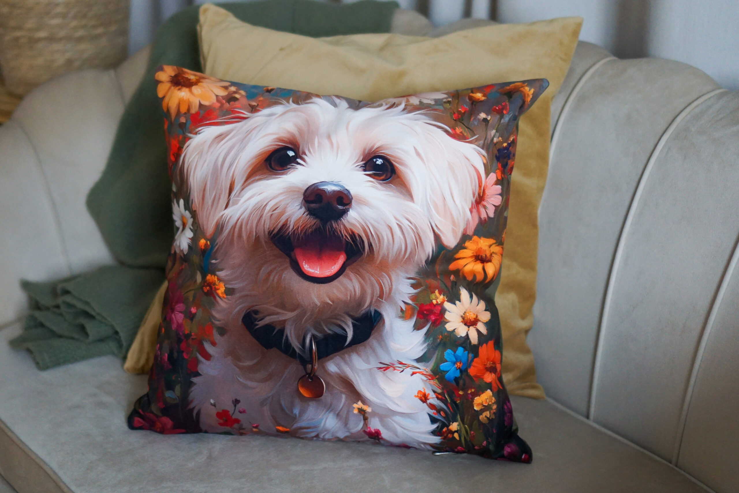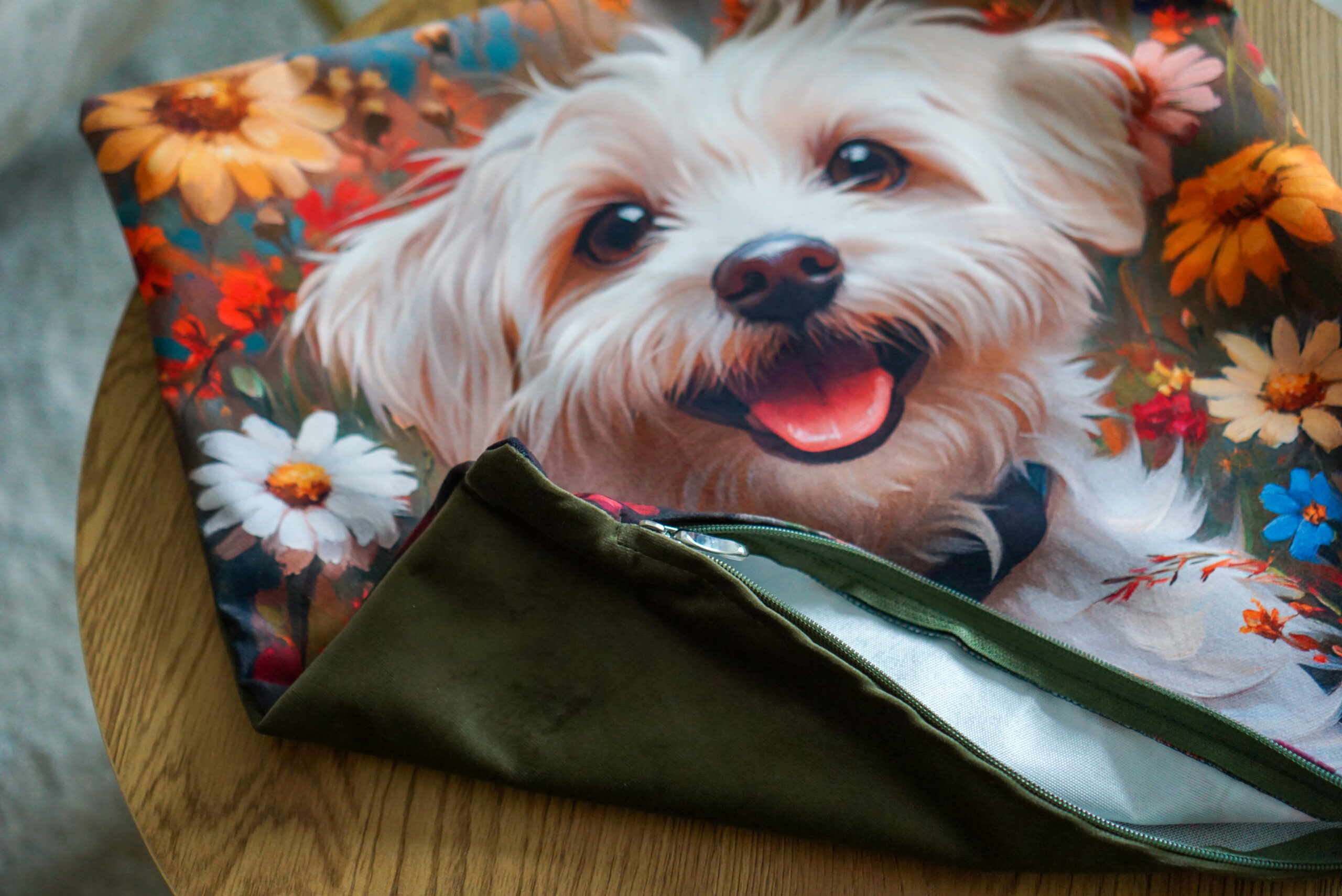 Stylowa i wygodna poduszka welurowa 45×45 cm z uroczym motywem Maltańczyka to wyjątkowy dodatek do wnętrza oraz piękny pomysł na prezent dla miłośnika czworonogów. Miękka, elegancka i przyjemna w dotyku – sprawdzi się zarówno w salonie, sypialni, jak i w pokoju młodzieżowym.