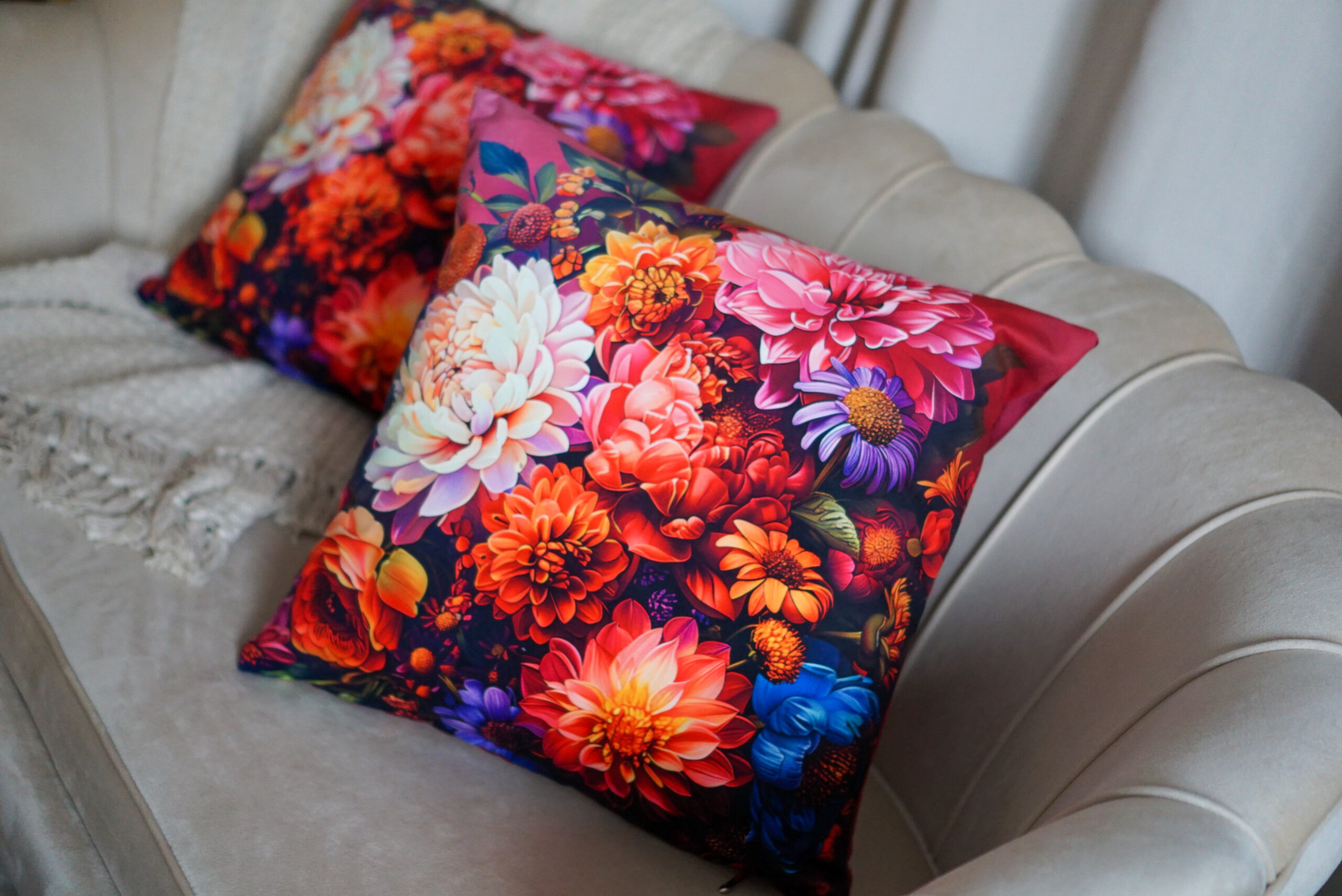 Welurowa Poduszka z motywem kwiatowym | wzór 2