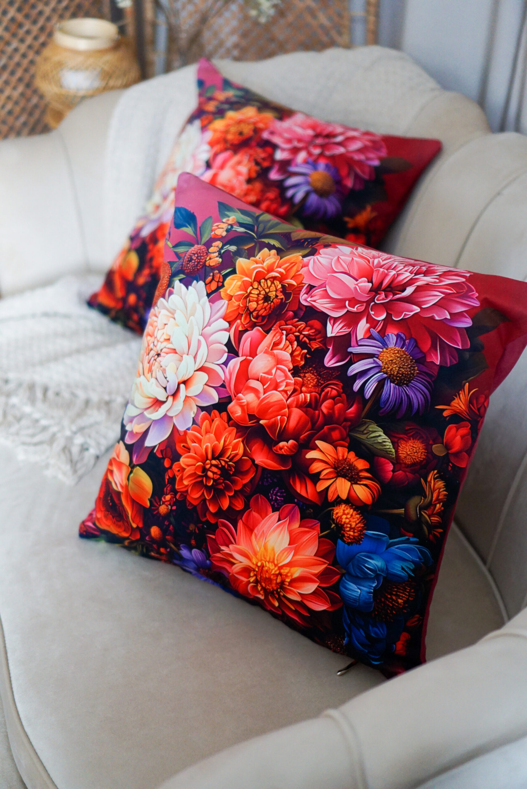 Stylowa i wygodna poduszka welurowa 45×45 cm z subtelnym motywem kwiatowym to elegancki dodatek do każdego wnętrza. Miękka, przyjemna w dotyku i starannie uszyta – pięknie ozdobi sofę, fotel lub łóżko, wprowadzając do pomieszczenia ciepło i delikatny akcent dekoracyjny.