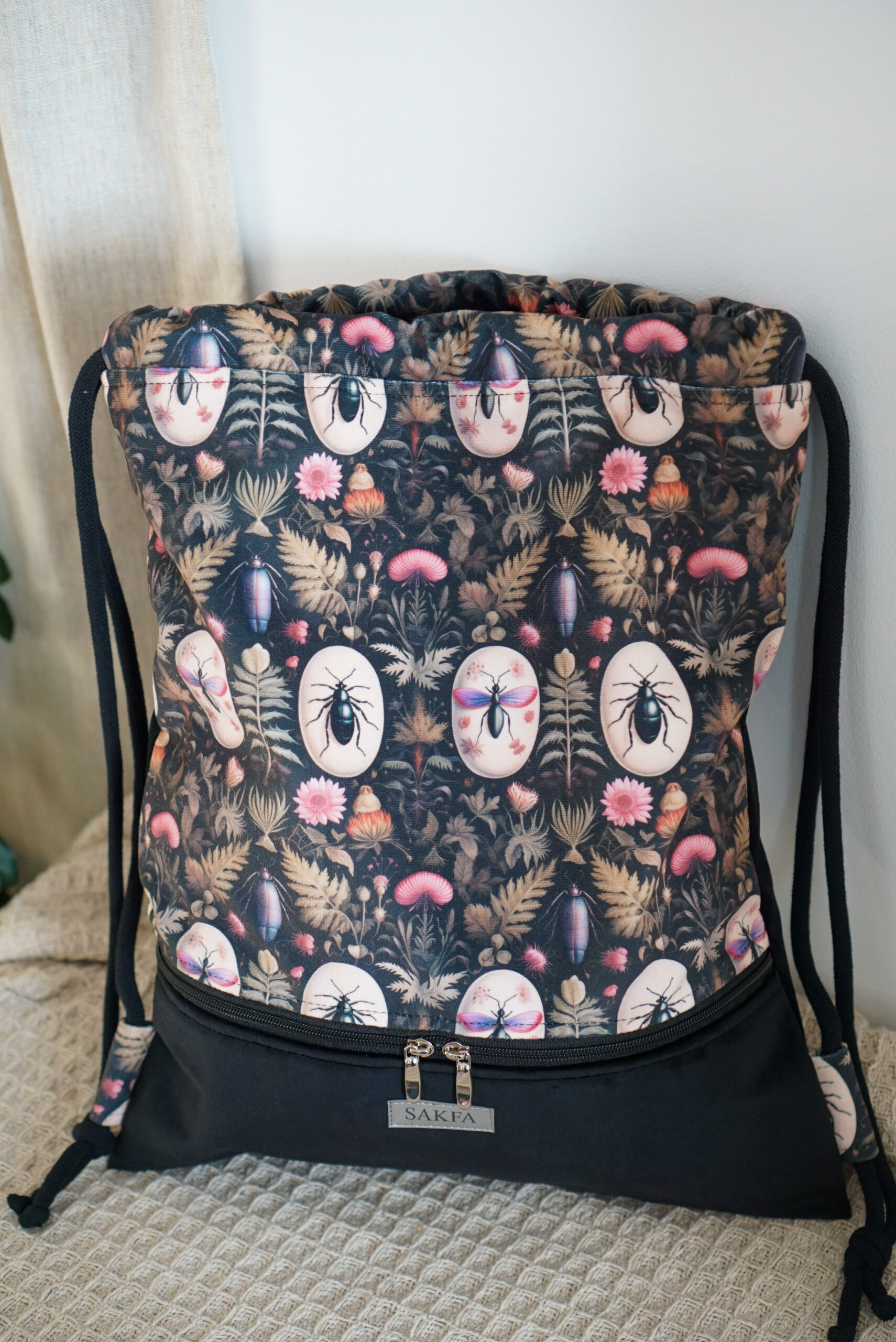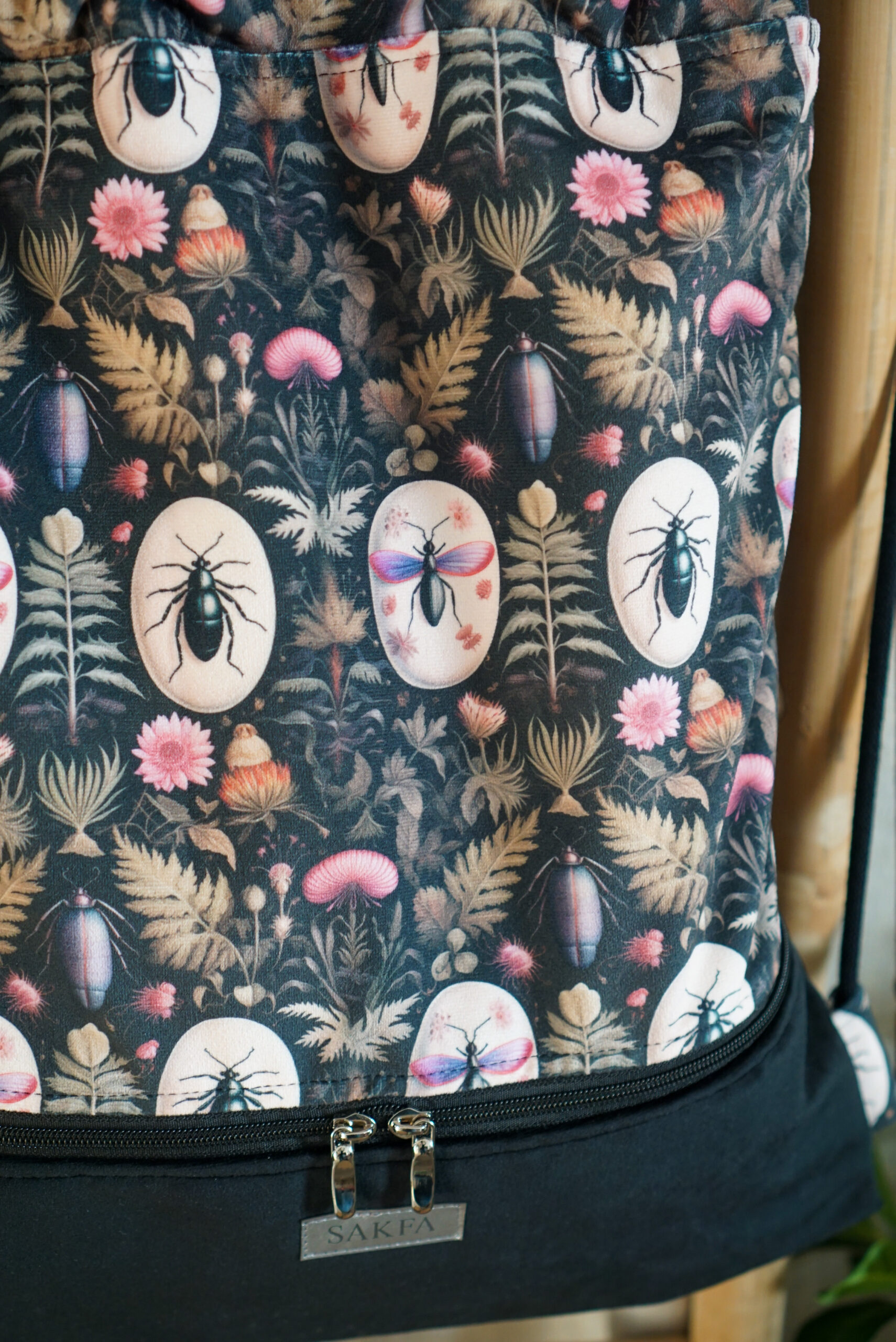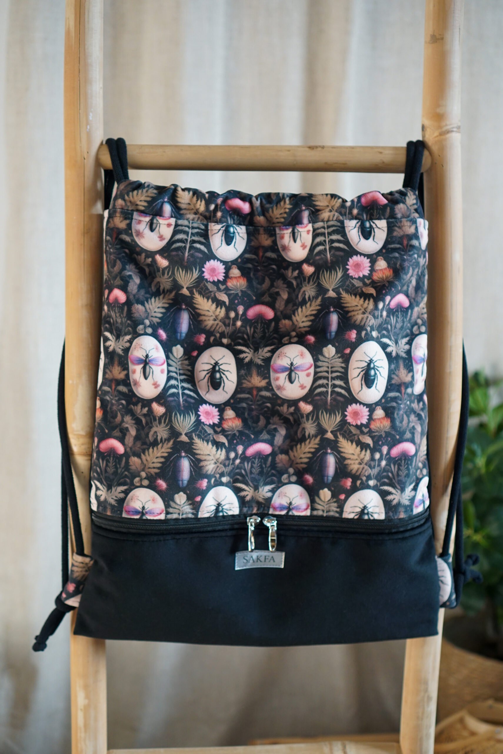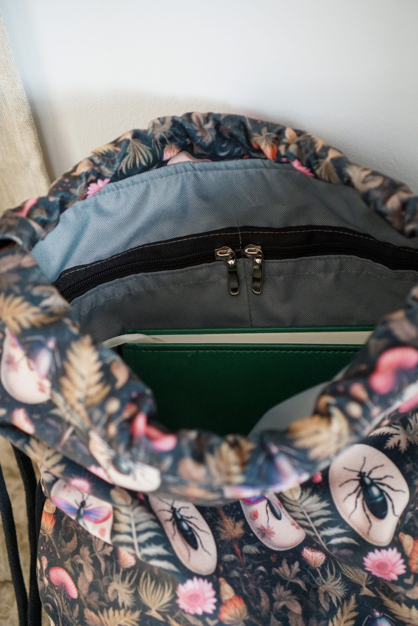 Plecak uszyłyśmy z połączenia gładkiej tkaniny welurowej i kolorowej góry również z miękkiego w dotyku weluru. Dodatkowo zadbaliśmy o ochronę Twoich rzeczy dzięki wodoodpornej podszewce.