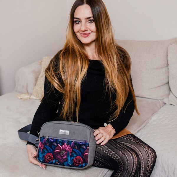 Mała listonoszka Sophie – niech nie zmyli Cię jej rozmiar! Mała, ale jaka pojemna i w dodatku z dużą ilością kieszonek. Środek skrywa bawełnianą podszewkę i trzy kieszonki w tym jedną zapinaną na zamek! Dodatkowe dwie znajdują się na przodzie i z tyłu naszej listonoszki. Z taką ilością kieszonek zapomnisz o bałaganie. Klucze, telefon, dokumenty, długopisy – wszystko piękne schowane. W dodatku jej rozmiar pozwala na spakowanie kalendarza czy planera.