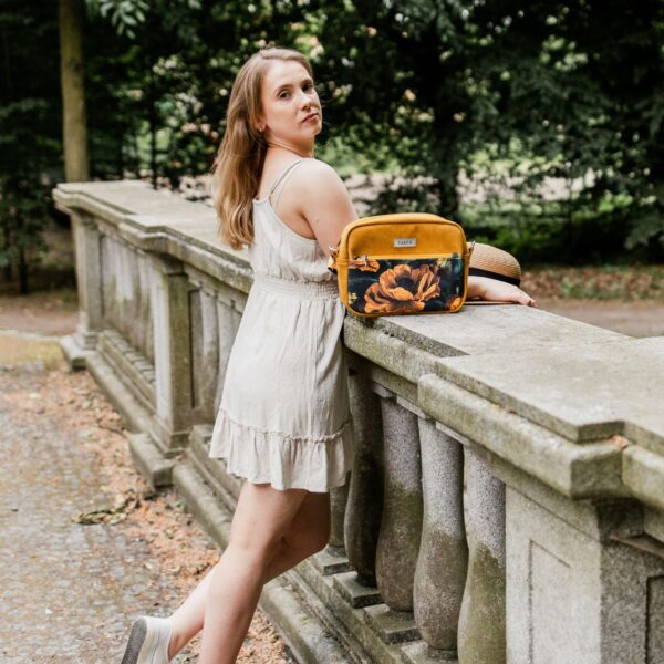 Mała listonoszka Sophie – niech nie zmyli Cię jej rozmiar! Mała, ale jaka pojemna i w dodatku z dużą ilością kieszonek. Środek skrywa bawełnianą podszewkę i trzy kieszonki w tym jedną zapinaną na zamek! Dodatkowe dwie znajdują się na przodzie i z tyłu naszej listonoszki. Z taką ilością kieszonek zapomnisz o bałaganie. Klucze, telefon, dokumenty, długopisy – wszystko piękne schowane. W dodatku jej rozmiar pozwala na spakowanie kalendarza czy planera.