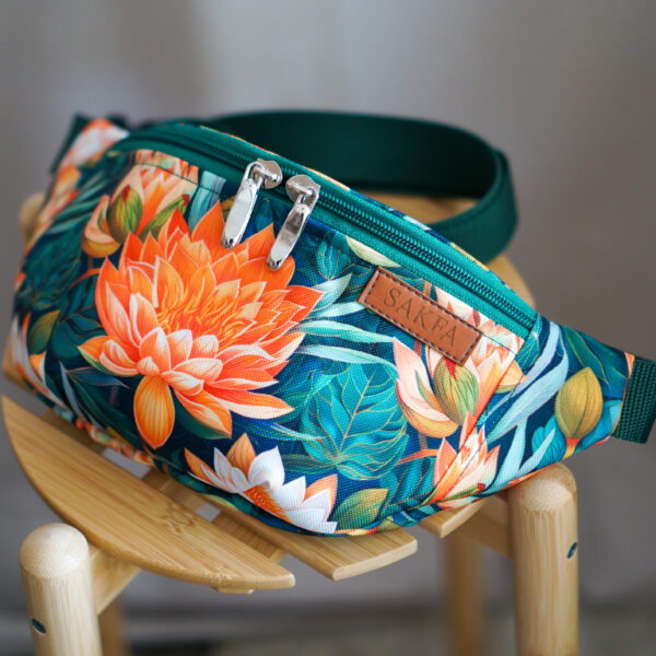 Wnętrze nerki kryje w sobie wodoodporną, kolorową podszewkę ozdobioną motywem kwiatowym, która nie tylko przyciąga wzrok, ale także chroni przechowywane w niej przedmioty przed ewentualnym zalaniem czy deszczem.